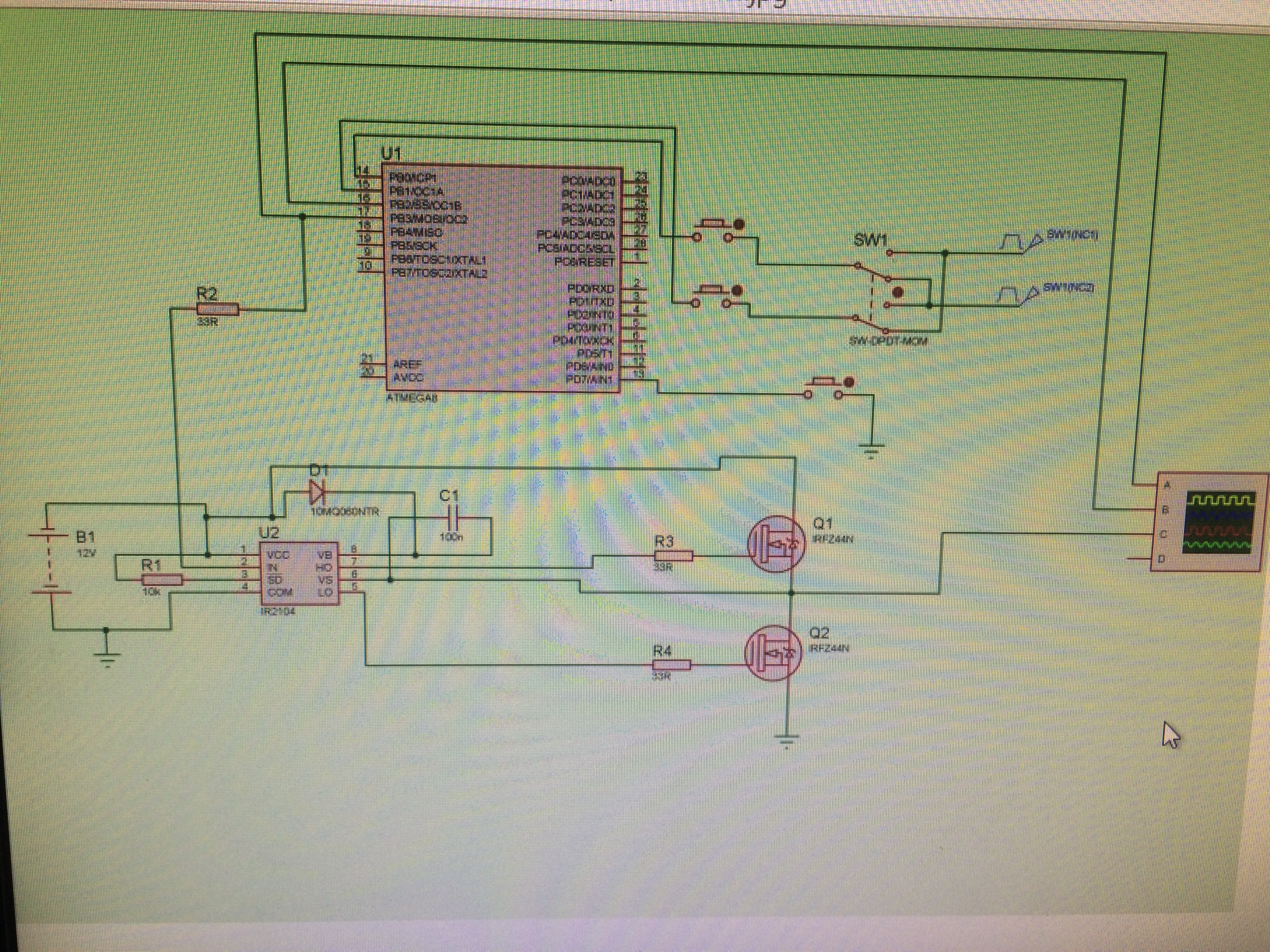 В общем собрал похожую схемку как на картинке: МК у меня мега 16, кнопок нет, транзисторы irf840, резисторы не ставил, конденсатор электролит 0,1мкФ, диод N4005 DS.