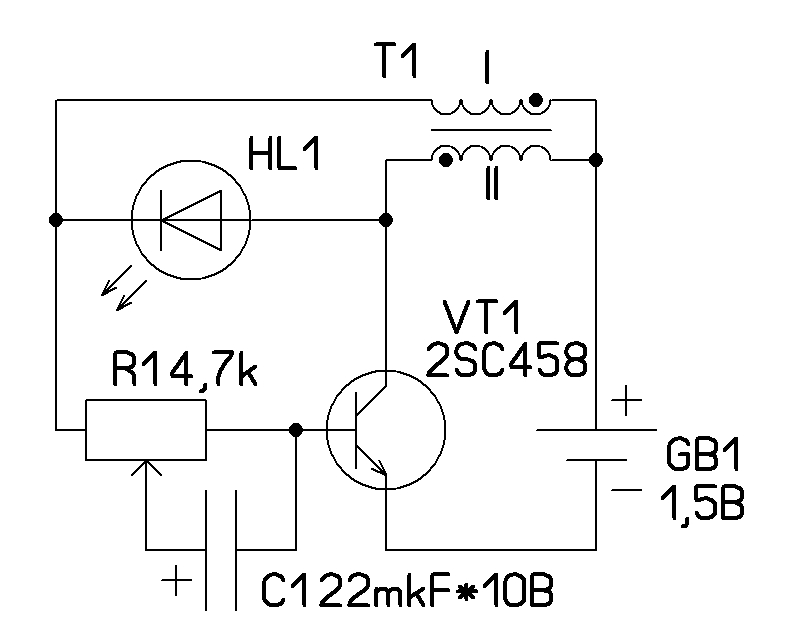 LTSpice в помощью Кратко: происходит зарядка индуктивности, которая по достижении опеределенного порога через обратную связь закрывает транзистор и заряд стекает через светик. О КПД схемы помодчу.