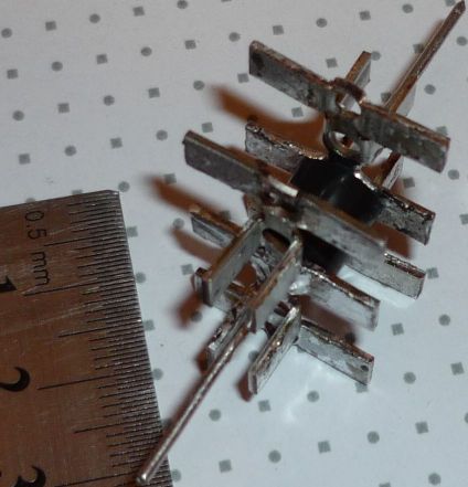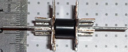 Перемычку разрезал пополам, разогнул несколько площадок для лучшего охлаждения и припаял с обоих торцов диода. Пайка такого большого радиатора далась не с первого раза... поняв что "маломощным" паяльником в 15Вт ничего не выйдет (ну сцуко отводит радиатор тепло сразу от места пайки) пришлось применить 100Вт паяльник. Радиатор зажимал в небольшие тиски, паяльником разогревал весь радиатор в месте припайки к диоду, как только олово нормально растекалось, а не кристаллизовалось по краям - засовывал диод - и быстро поливал всю конструкцию водой. И так с обоих торцов диода. Ножки диода пока оставил, думаю к ним провода припаять в дальнейшем, хотя смысла в ножках наверное нет, ведь можно непосредственно к торцевым радиаторам паять провода.