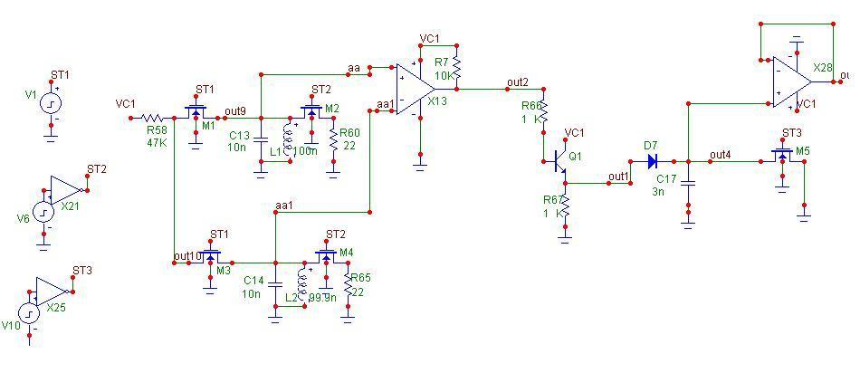 Vovan писал(а):Первое что сразу бросилось в глаза - подключение транзистора Q1, он сидит "как воробей на проводе". Через конденсатор к нему никак "-" питания не придёт... Может что-то не дорисовано? И ещё Вы пишите (выше) что транзюк включён по схеме с ОБ - этого не видно! На базу и на коллектор я вижу только "+" питания, а эмитер включён на выход... Чё-то тут непонятное... При включении транзистора по схеме с ОБ, само название (ОБ) говорит о том что на базу должно поступать "напряжение" общего питания (в данном случае "-"). Если транзистор здесь, всё же, включён по схеме с ОЭ, то тоже не верно. Иными словами: транзистор по-любому остался без питания. И чего от него хотеть?![]()