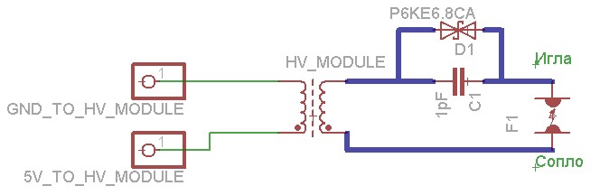 пробую сделать плазменную горелку для 3D принтера на HV модуле с алиэкспрес, который питается другим понижающим модулем с 12 до 5 вольт.