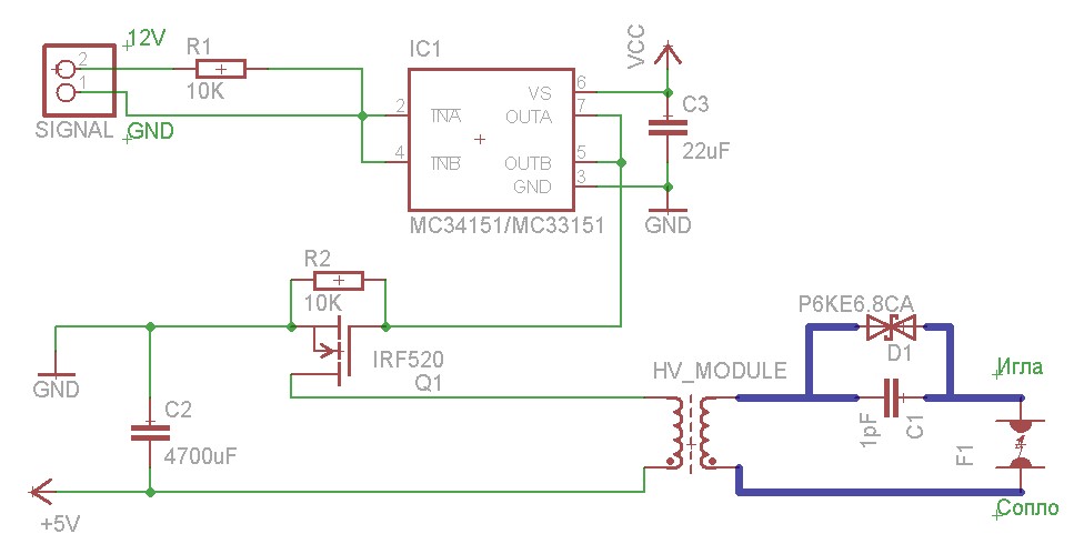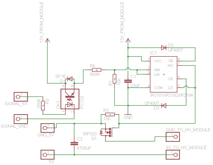 пробую сделать плазменную горелку для 3D принтера на HV модуле с алиэкспрес, который питается другим понижающим модулем с 12 до 5 вольт.