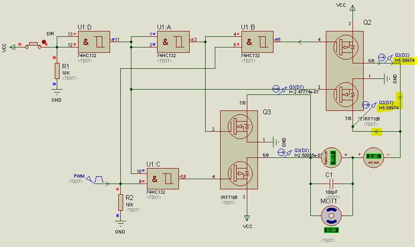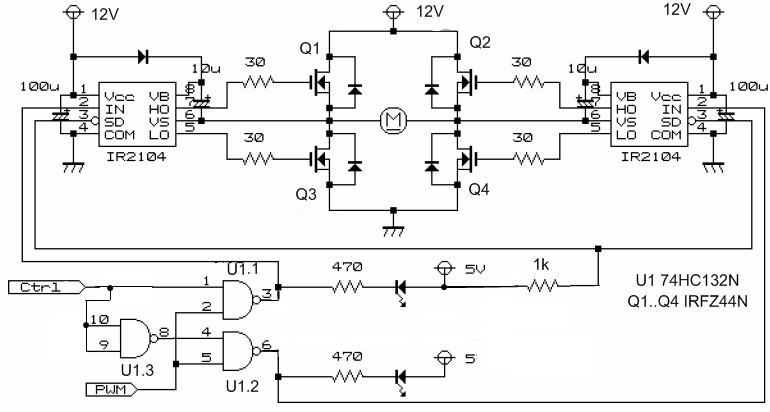 при питании выше примерно 8 вольт верхние транзисторы будут постоянно открыты.SMT писал(а):Прошу взглянуть на схему (взята из Минибот-а). Мне кажется не правильно у меня сделано.