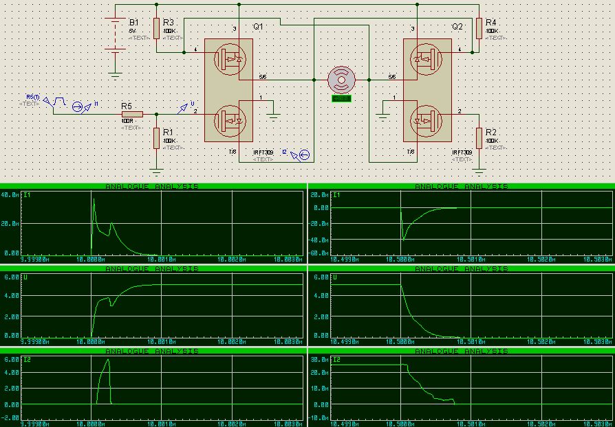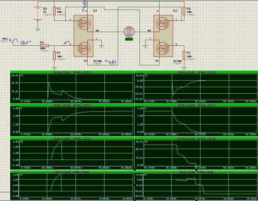 сюда воткнуть не получается - протеус ругается.а тебя не затруднит воткнуть амперметр в сток верхнего ключа Q1 (выводы 5,6)