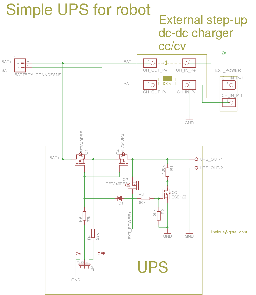 транзистор Q2 - ключ вместо диода в предыдущей схеме, пропускает питание EXT_POWER на выход ИБП, меньше греется чем диод.