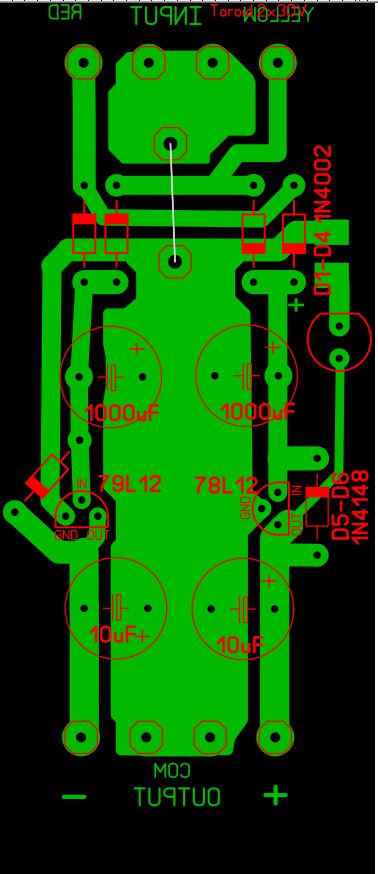 Dmitry__ писал(а):Лучше все детали отпаять, впаять только один диод по плюсу и конденсатор. Проверить вольтметром напряжение, допаять 2-диод - проверить. Потом впаять 2 диода и конденсатор по минусу. Если все в порядке, то допаять стабы и выходные конденсаторы.