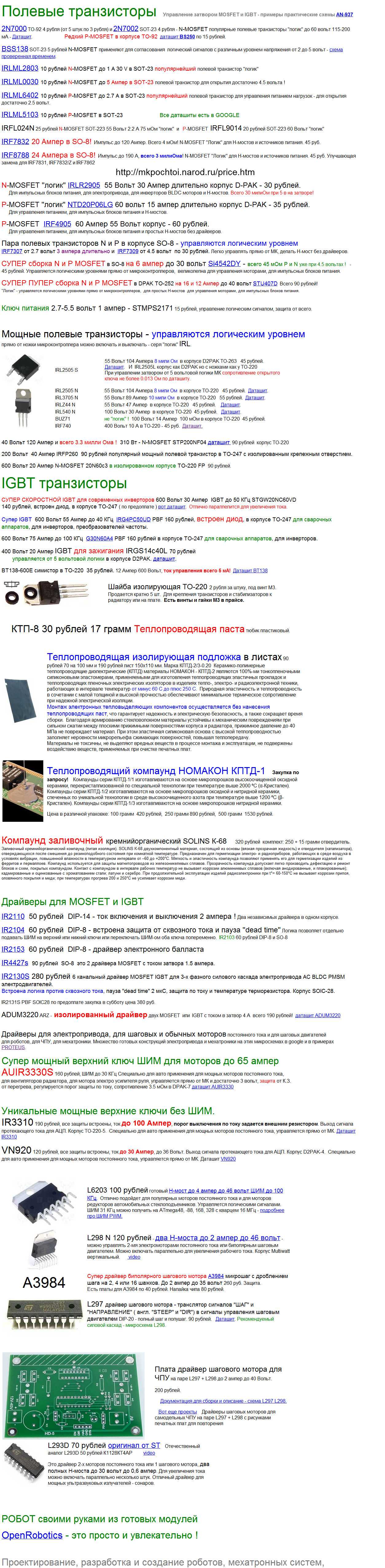 Охринительные MOSFET в наличии и недорого ( не как в чип дипе) есть у Семенова Михаила по-почте