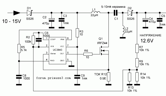 Есть идея взять типовую схему LM3478 и заменить ее на тиньку которую будем запитывать через стабилитрон.