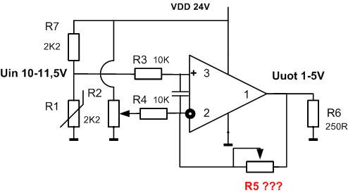 Задача: Необходимо нормализовать и входной сигнал 10-11.5В до уровня 1-5В