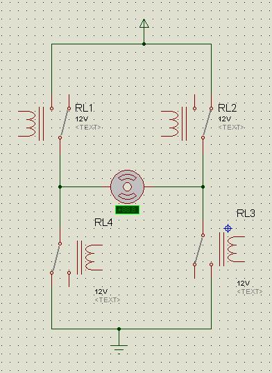 Все реле с НО (нормально разомкнутым) контактом. По схеме напруга подана на R2 и R4 - аверс. Сняли напрчгу со всех - стоп; подали на R1 и R3 - реверс. НА R1 - R4 и R2 - R3 одновременно не включать, будет КЗ!