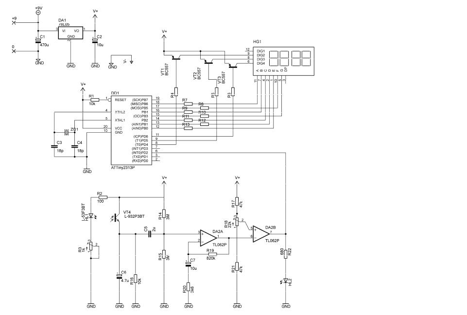 galex1981 писал(а):Сам датчик представляет собой конструкцию типа ик бампера, только используются обычный светодиод для подсветки кожи и вышеуказанная оптопара. Датчик может крепиться на мочку уха или на палец. Далее выход оптопары идет на усилителеподобную схему.