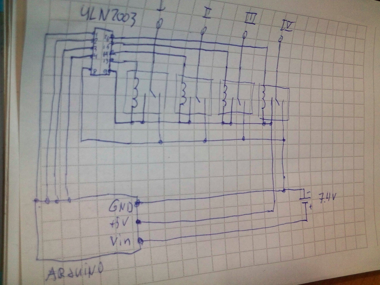 Для управления использую Arduino Nano. Линию +5V брал от ардуиновского же преобразователя, он вроде это позволяет. Коммутируется все те же +5V. Так же менял линию +5V на +3.3V, то же самое. На 7.4V та же картина.