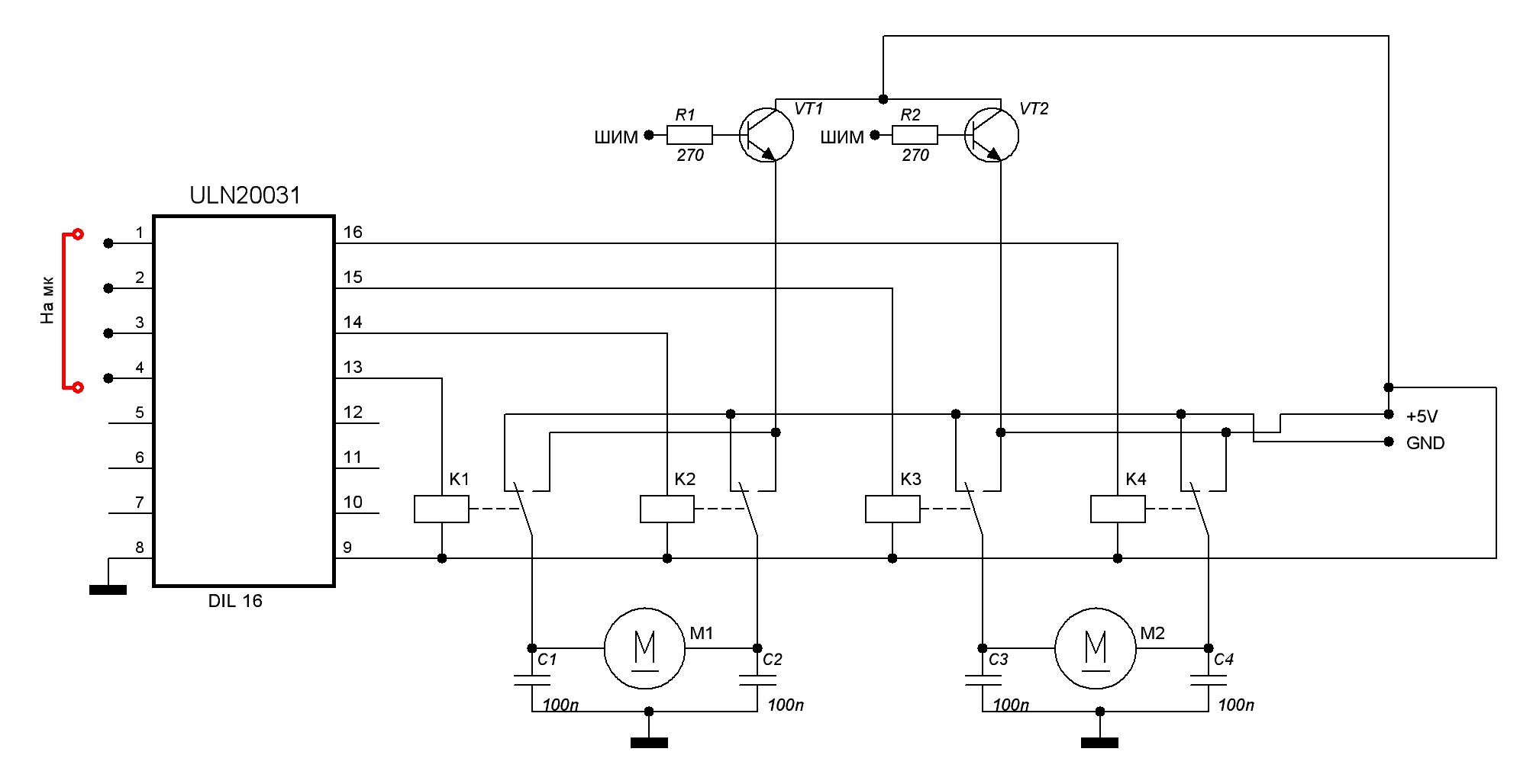 Народ посмотрите . Накидал схему. Интересуют конкретно ключи, которые поставил. Если они будут так стоять, то получится управлять шимом моторов или надо по другому?