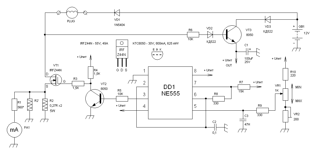 Привет всем. Хочу спросить совета по поводу схемы ШИМа для накала свечи. Для начала там есть кондюк 47Н, не совсем понимаю какой номинал это. И вообще подскажите имеет смысл данная схема? Какие есть спорные моменты? Вообще схема с сайта моделистов, они ей греют свечку в своих калильных двигателях. А я хочу питать свечу накала от камаза для дизельной печки от Татры.