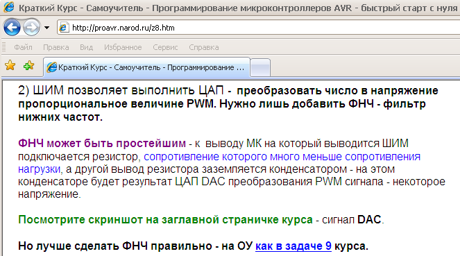 Моя хрустальная мечта - сделать ЦАП. Тоесть преобразовывать код в напряжение.