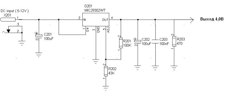 Напряжение выходное: минимум - 3,2В, рабочее - 4В, максимум - 4,8В.