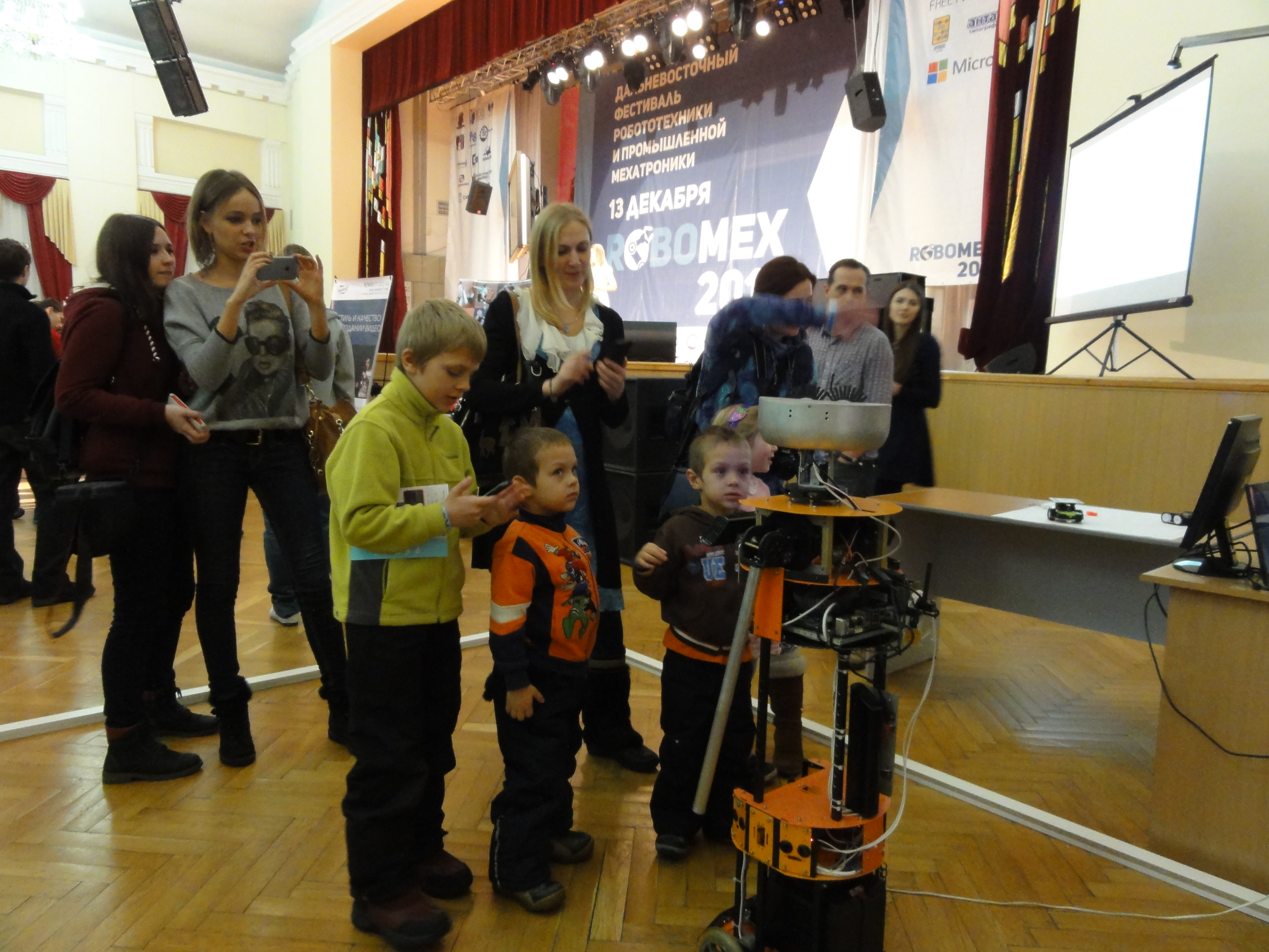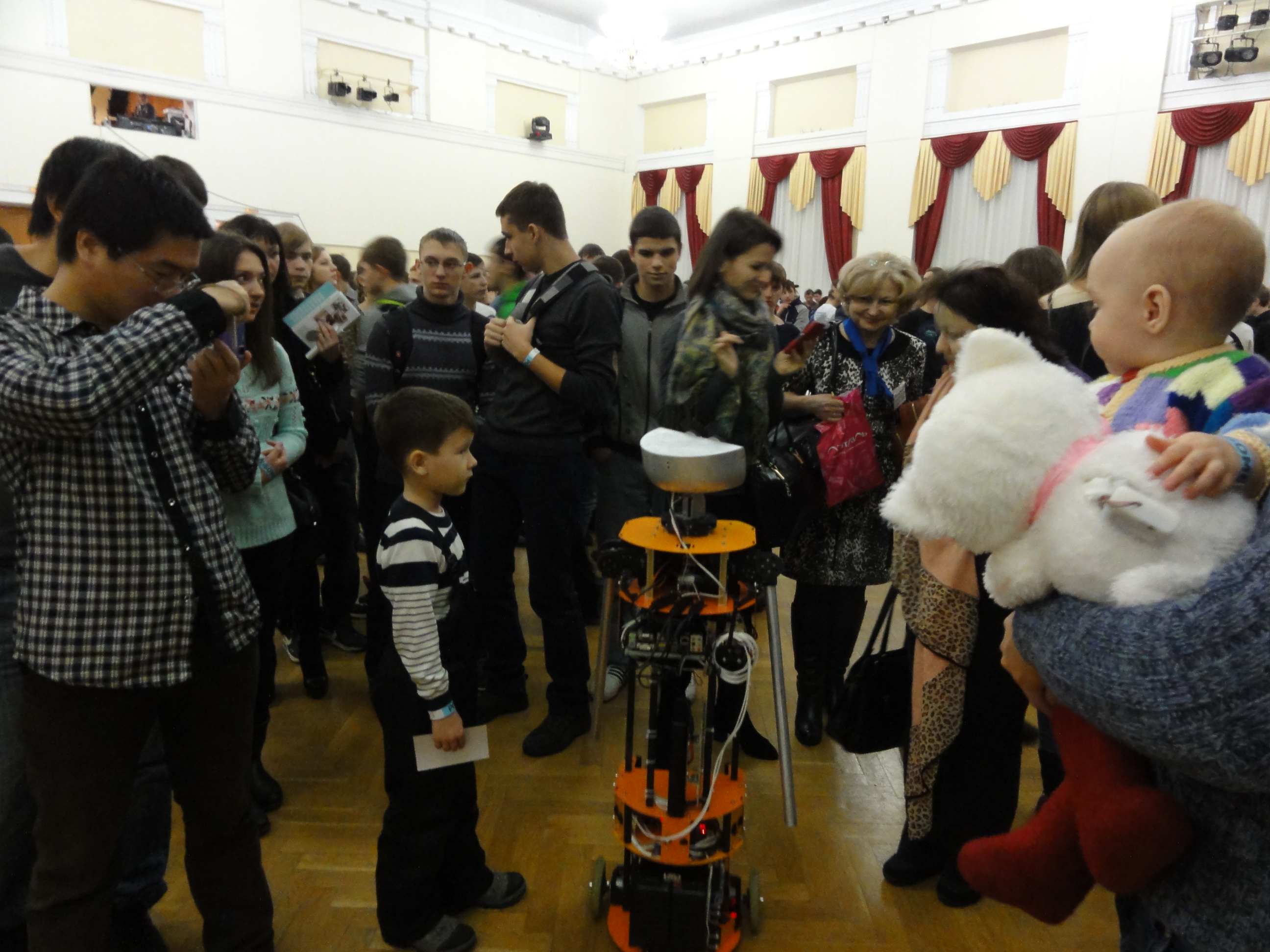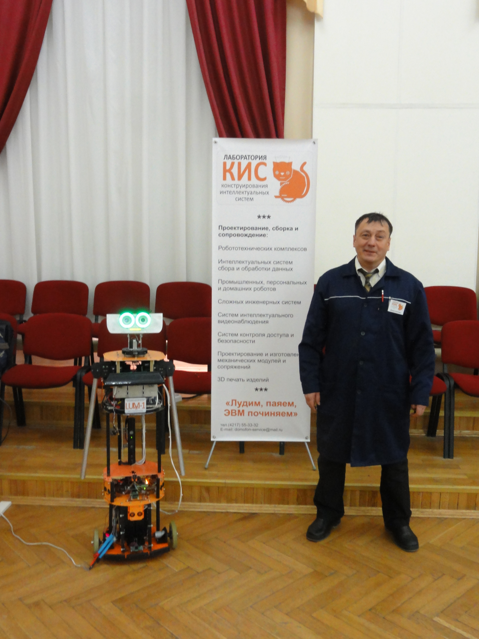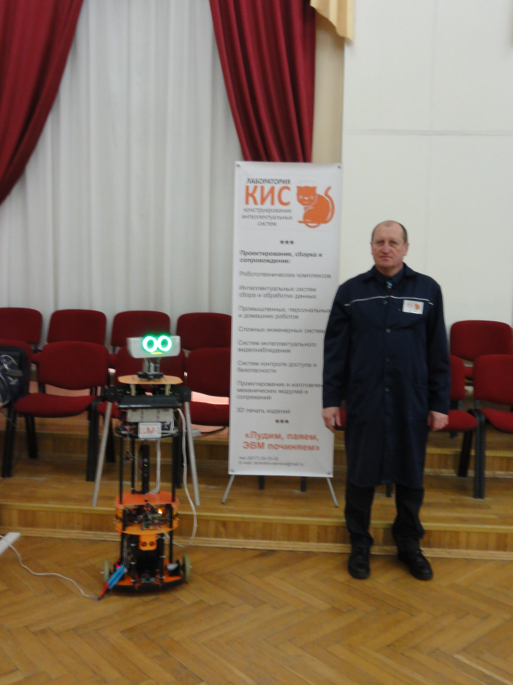 Кроме того, были проведены испытания робота на длительность работы от новых АКБ (как уже писалось, в LUM-е установлены два аккумулятора по 17А/ч). Результаты испытаний очень обнадежили. При полной "нагрузке" на АКБ - были включены все три сенсора KINECT (работали модули детектирования человека, распознавания и объезда препятствий вдалеке и вблизи робота, работали привода поворота и наклона головы при декретировании фигуры человека (для отслеживания последней)), робот перемещался по помещению т.е. непрерывно работали двигатели платформы - при всех работающих модулях средний ток потребления составил около 3А., при этом робот откатался