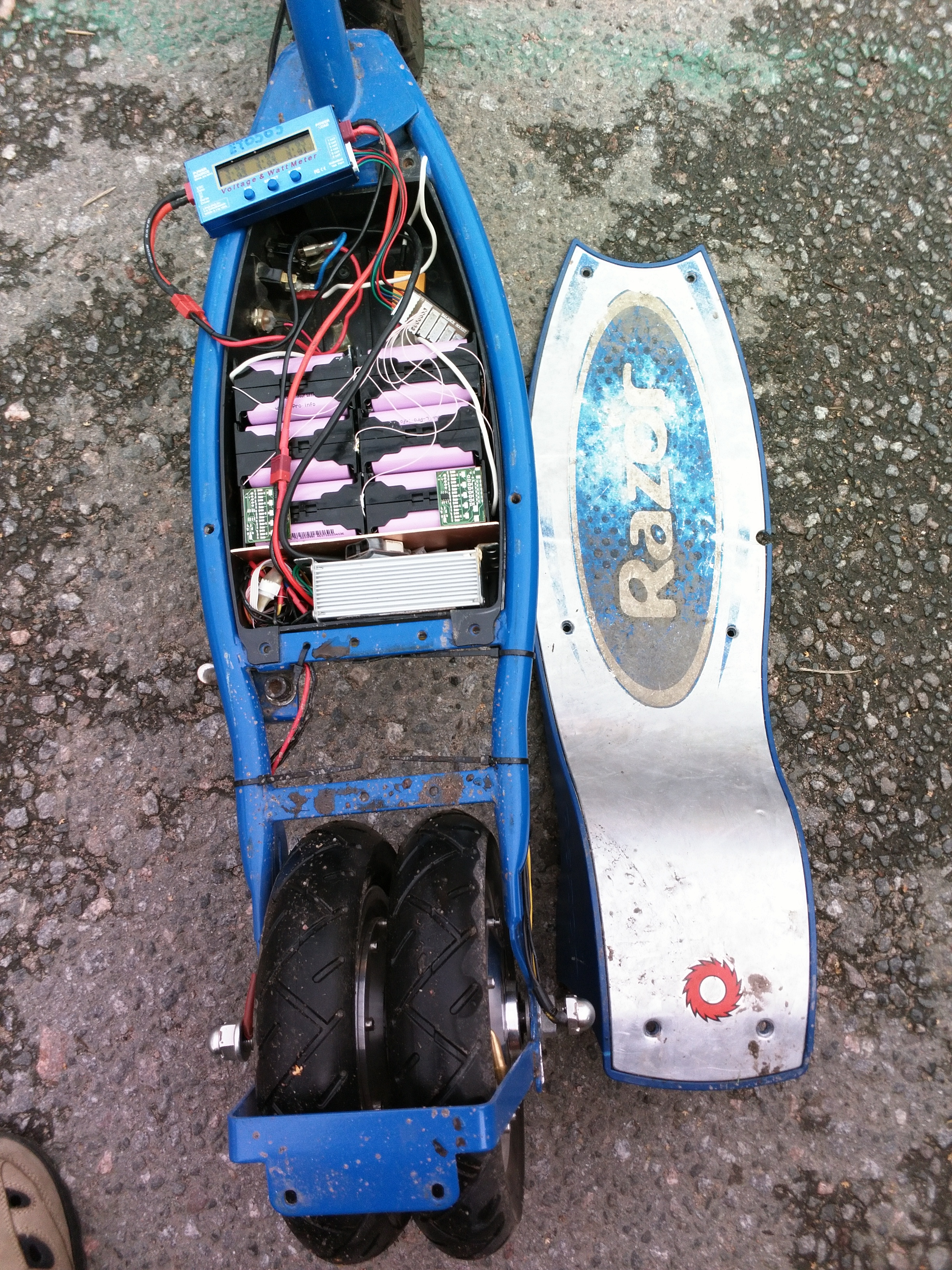 . Аккумы занимают весь отсек скутера, контроллер пришлось выносить из отсека на место бывшего двигателя.