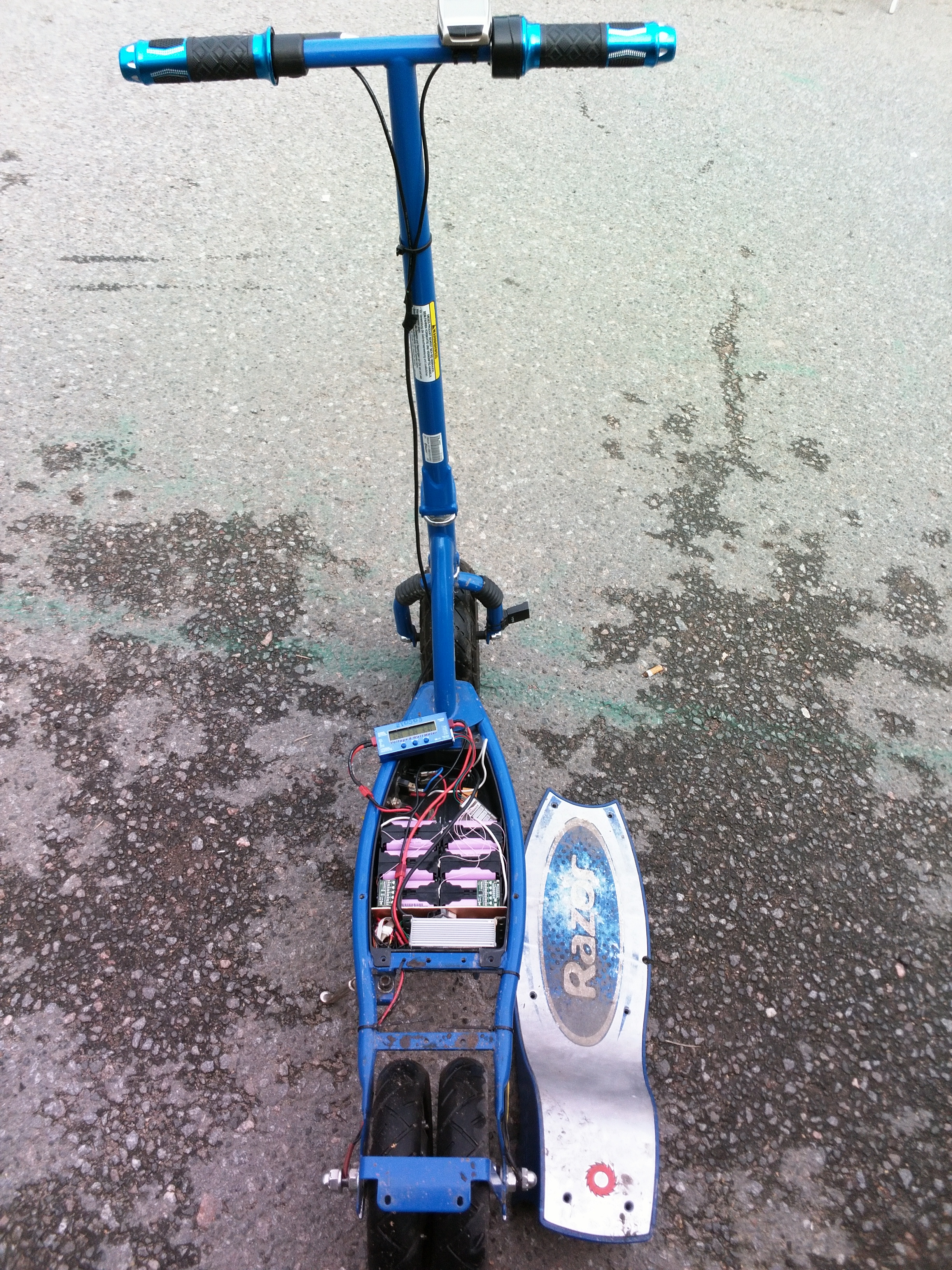 . Аккумы занимают весь отсек скутера, контроллер пришлось выносить из отсека на место бывшего двигателя.