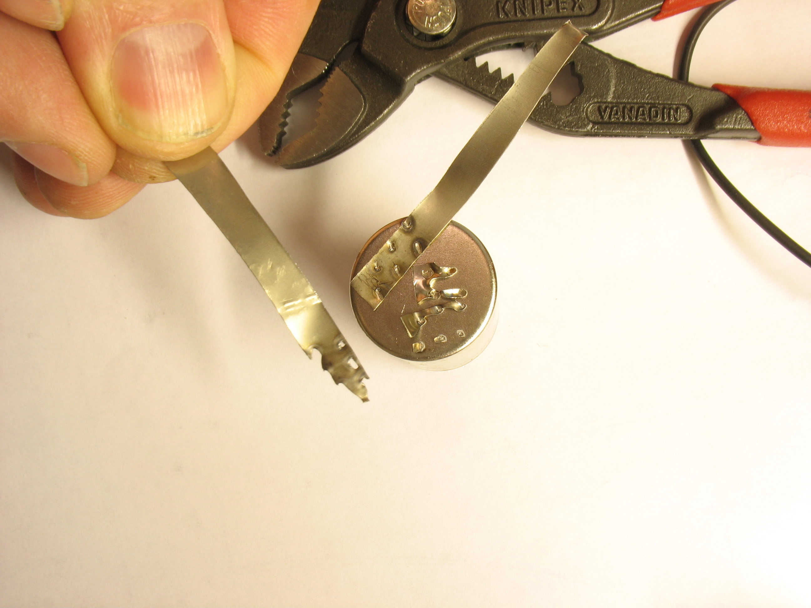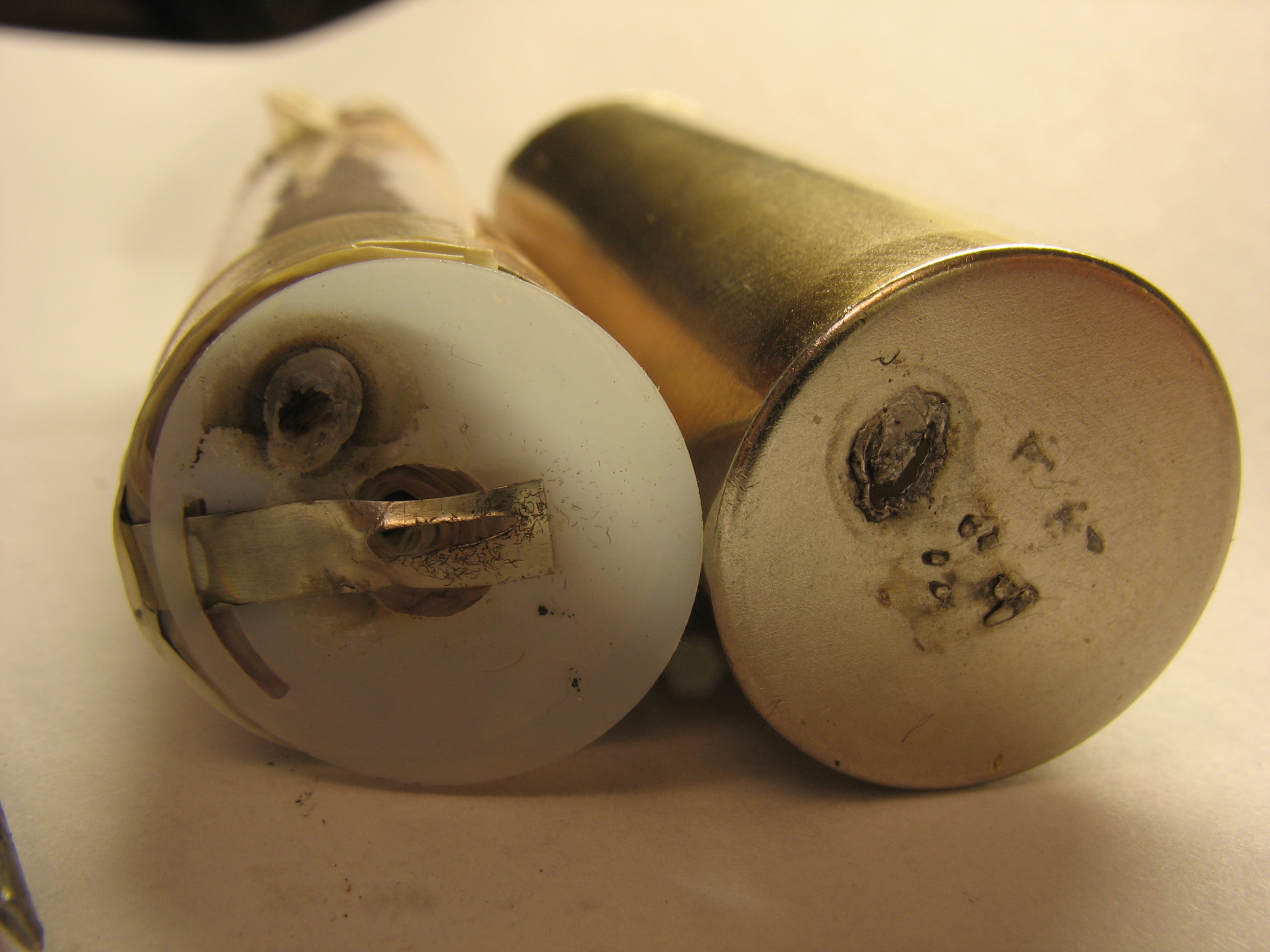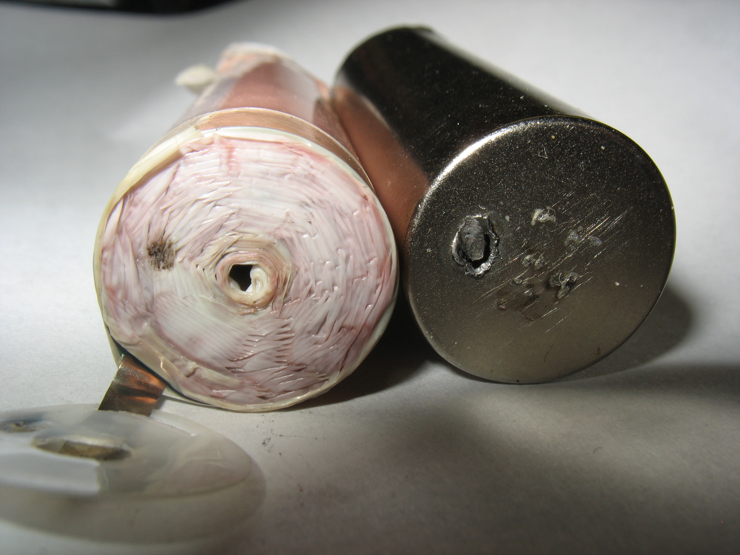 . В общем, решил посмотреть внутренние повреждения. Вскрыл аккум. Справа корпус аккума, слева - рулон.