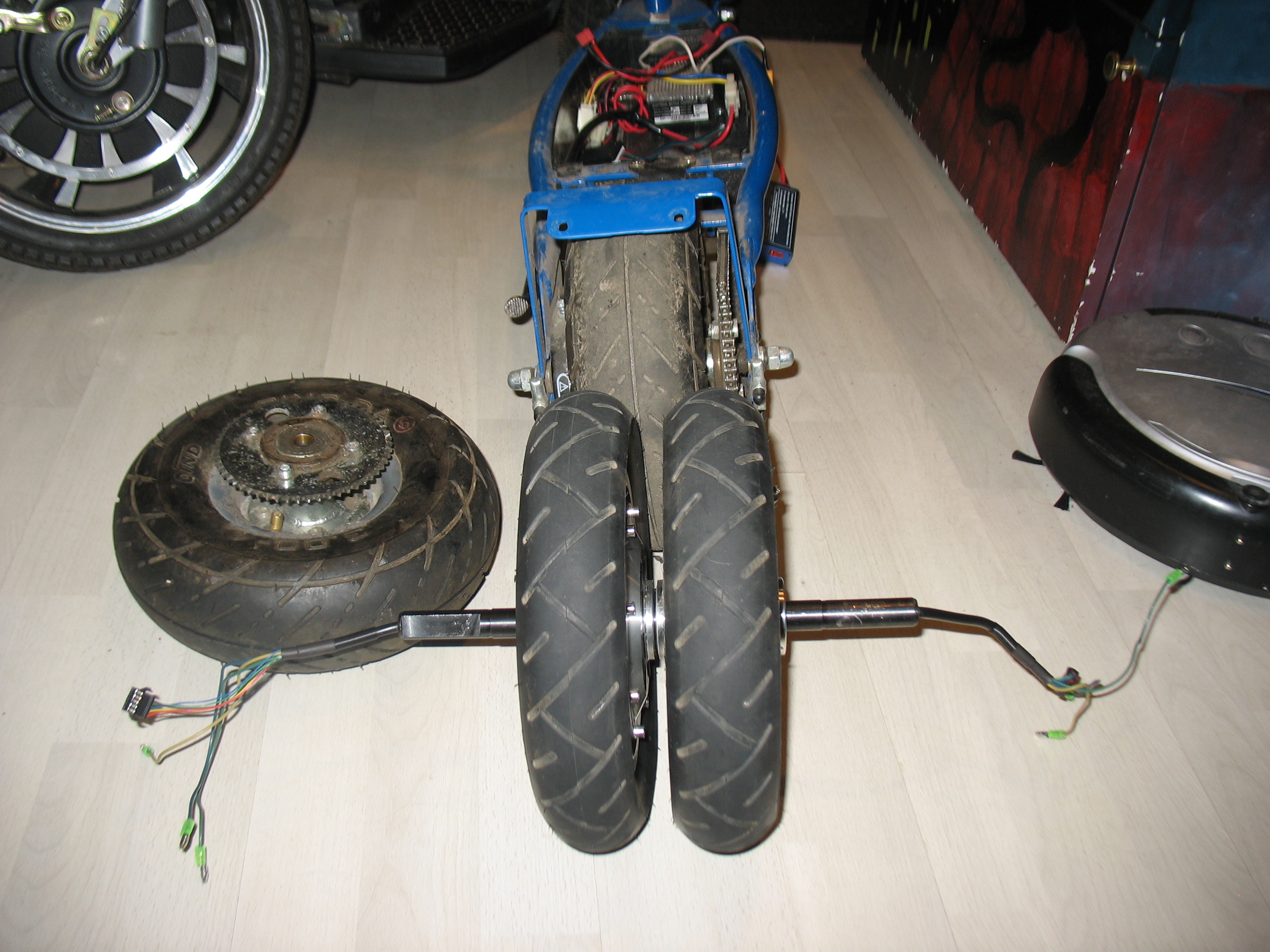 Общий вид. Раму пришлось немного согнуть у колес, тут видно: