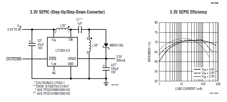 Пересмотрев несколько вариантов, остановился на LINEAR TECHNOLOGY - LT1304, выбрал подходящую схему, такую: