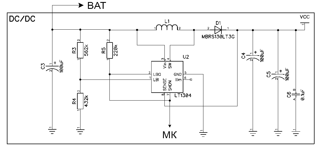 Пересмотрев несколько вариантов, остановился на LINEAR TECHNOLOGY - LT1304, выбрал подходящую схему, такую:
