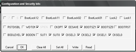 Короче говоря, собрал я этот внешний RC генератор. Подключил. С первой попытки микроконтроллер начал тормозно выполнять зашитую в него программу (подавать данные через UART в компьютер). Pony prog при этом ни в какую не хотел видеть контроллер. Однако, если нажимать Ignore, программа ругается и читает НЕЧТО, сильно напоминающе латинский алфавит. При увеличении частоты контроллер неожиданно начинает определяться. Считываю фьюзы. ФИГАСЕБЕ!!!! Они ВСЕ установлены!!! Сбрасываю. Выставляю по нормальному. Жму WRite. Программа пишет Write succesful. Заново считываю фьюзы. И опять... ФИГАСЕ!!!!! Они снова все установлены. И так пока мне не надоело..... Короче говоря, всё зашибись! Страницу 7 курса заучил наизуст, хожу по квартире и цитирую, как сумасшедший. Появились мысли убить контроллер 100 ваттным паяльником, чтобы не мучился...