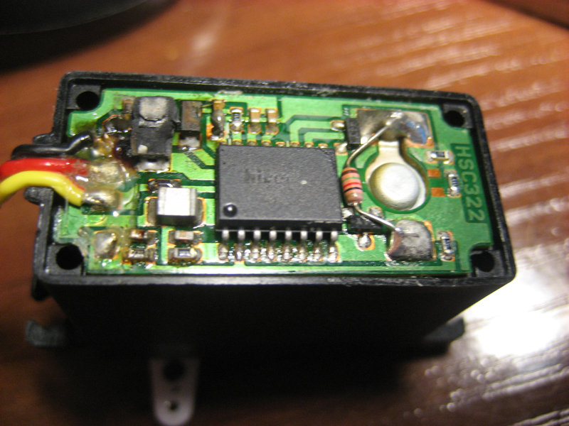 2)У второй сервы прогар крышки намного меньше и расположен он над микросхемой, маркировка - Hitec y16 ht7002.
