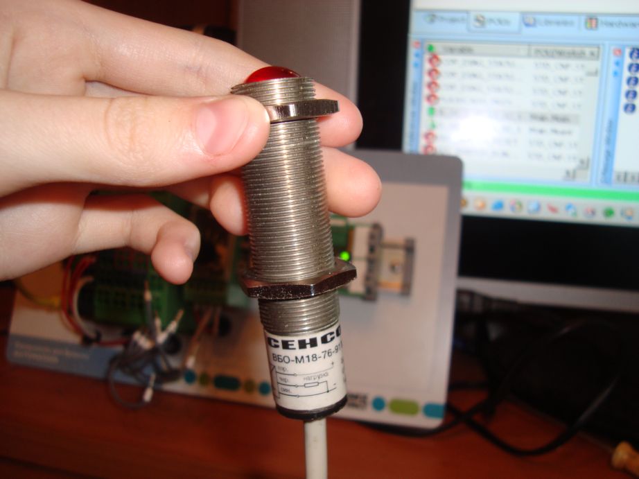 На борту у 130 два интерфейса: для программирования и Ethernet. Но к нему есть модули связи (коммуникационные) от RS232/422/485(Modbus и т.п) до CAN. Пристегиваются с боку специальными разъемами. Сегодня прицепил ИК датчик (излучатель и приемник) и сконфигурировал железо в проекте: Принцип работы датчика: