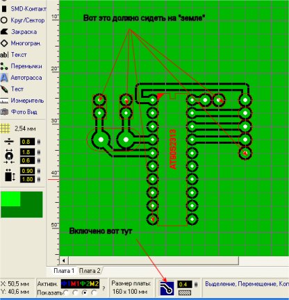 Принимайте новенького :) Вообще я программист, но робототема меня интересует давно, только к практике я боялся подступиться :) Паяльник держать умею, но не более того. AVR начал освоивать недавно, светодиод у меня уже заморгал :) Приступил к освоению лазерно-утюгового метода изготовления плат (спасибо этому форуму!) и забуксовал в Sprint Layout'e - что бы не травить много, хочу сделать всю свободную фольгу землей, но никак не могу на нее посадить контакт - как только рисую пятачок или еще какой-нить элемент - так мне его тут же ловко изолируют от остальной фольги. Помогите мне "присобачить" землю :)