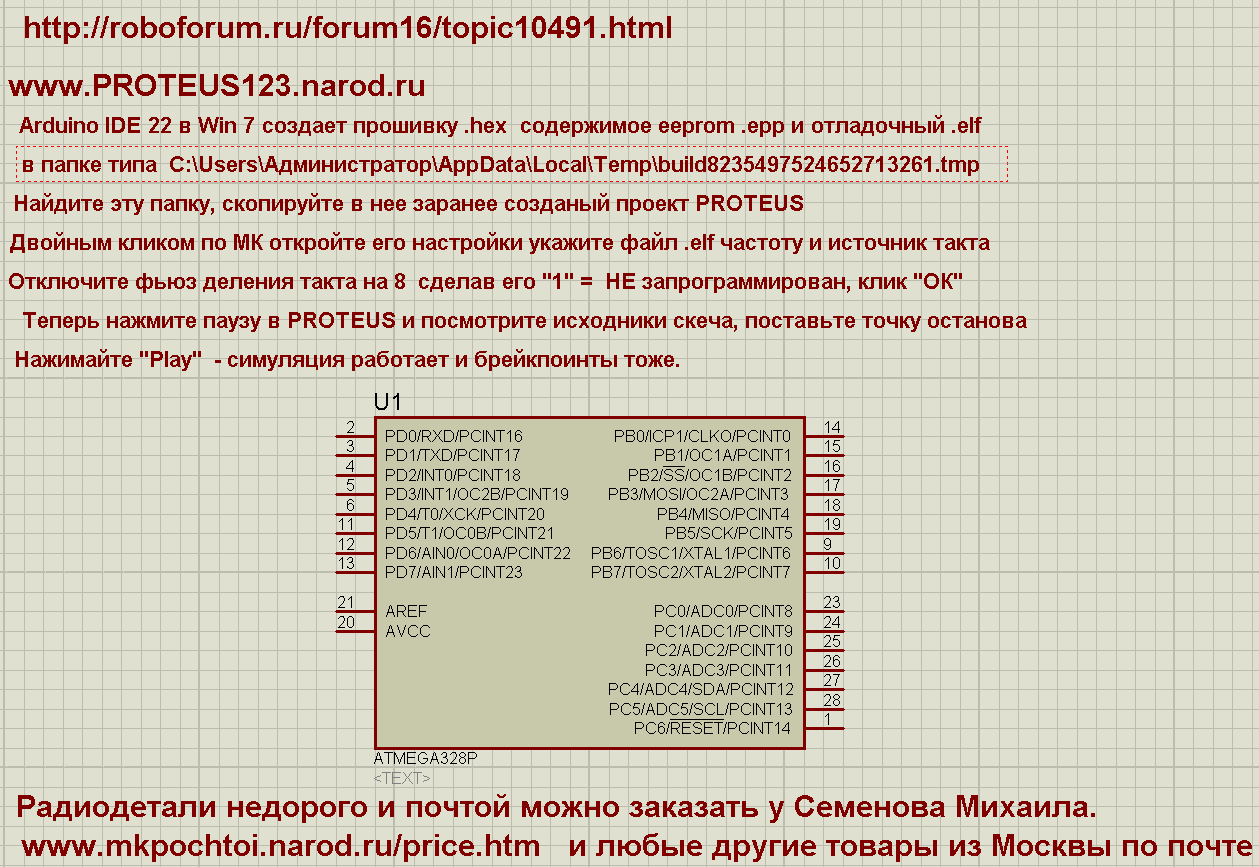Симуляция моделирование Arduino в PROTEUS Вот спасибо ! Запустил ардуино, сразу возникло 3 новых папки в C:\Users\Администратор\AppData\Local\Temp\