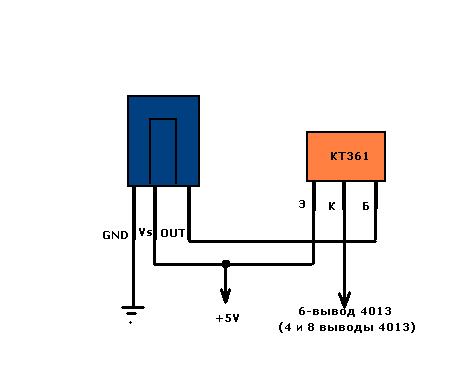 4. Отстроить генератор пачек, можно так: подключить к ТСОПу светодиод (через резистор 200-300ом) между OUTом и, например,+5в; запитать эту схемку отдельно и установить на одном конце стола. На другом конце стола установить плату логики с генератором и ИК светодиодом; постоянные резисторы генератора выпаять, а подключить подстроечные многооборотные; запитать плату (моторы пока отключить). Вращая поочередно подстроечники добиться сначала моргания, а затем и горения СД (на ТСОПе) при вкл. питания генератора.