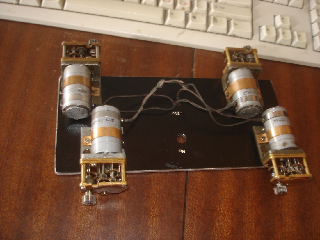 Собрал "ходовую" для вездехода - просто пластина, а к ней прикручены четыре двигателя с редукторами. На каждом редукторе будет колесо. Полный привод. Двигателя 24-ех вольтовые. Есть преобразователь напряжения 5В -> 24В.
