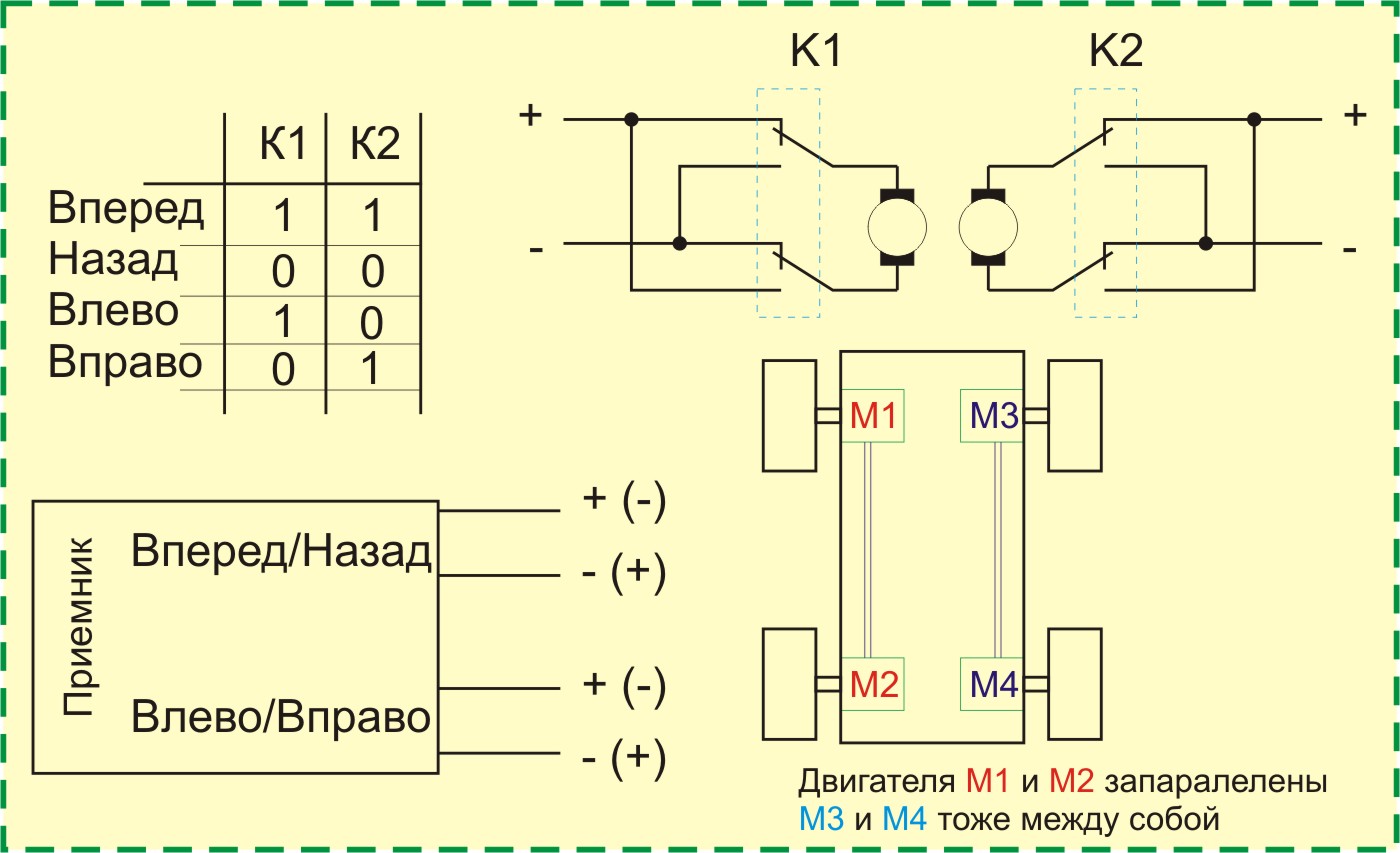 1. Запаралелить два левых и два правых двигателя.
