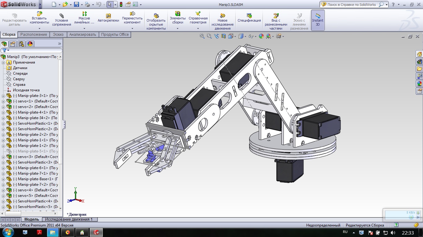 Получил на дипломную работу интересную как на меня тему...нужно сделать руку робота, которая будет управлятся серводвигателями HXT900. Я в этом деле полный ноль. Порывшись немного в инете нашел 3d модель сделаную в SolidWorks. С изготовлением запчастей проблем небудет...но проблема в управление. Посоветуйте какой микроконтролер лучше всего подобрать, если кто может скиньте схему подключения. Манипулятором планирую управлять с помощью геймпада или компютера, подскажите как это сделать!