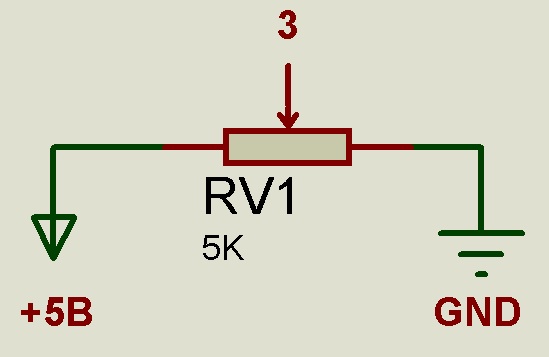 Здравствуйте, сейчас занимаюсь данным проектом: http://avr-start.ru/?p=296 К изучившим содержание данной страницы имеется вопрос: как понимать такое подключение переменного резистора (см.фото) для управления контрастом жк экрана ?
