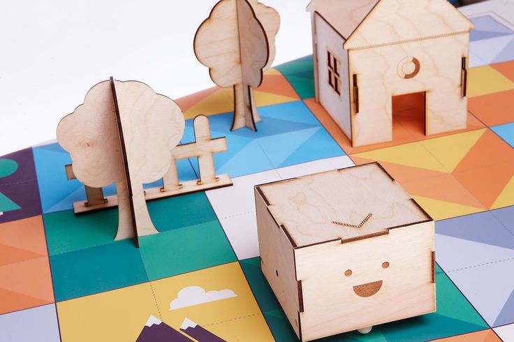 Ребенок втыкает одну фишку - ехать прямо, нажимает кнопку передачи команд. Робот едет одну клетку. Готово!