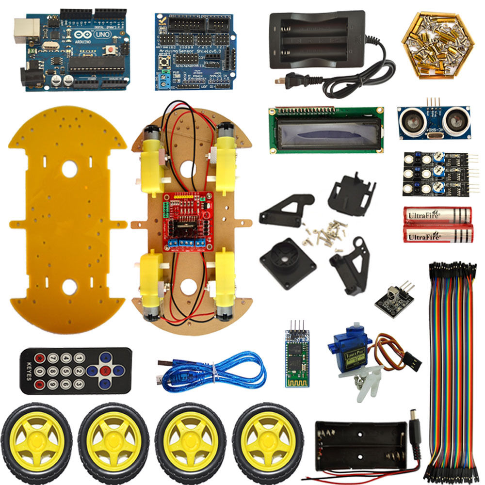 Можно найти на ebay или aliexpress по словам "smart car robot kit arduino"