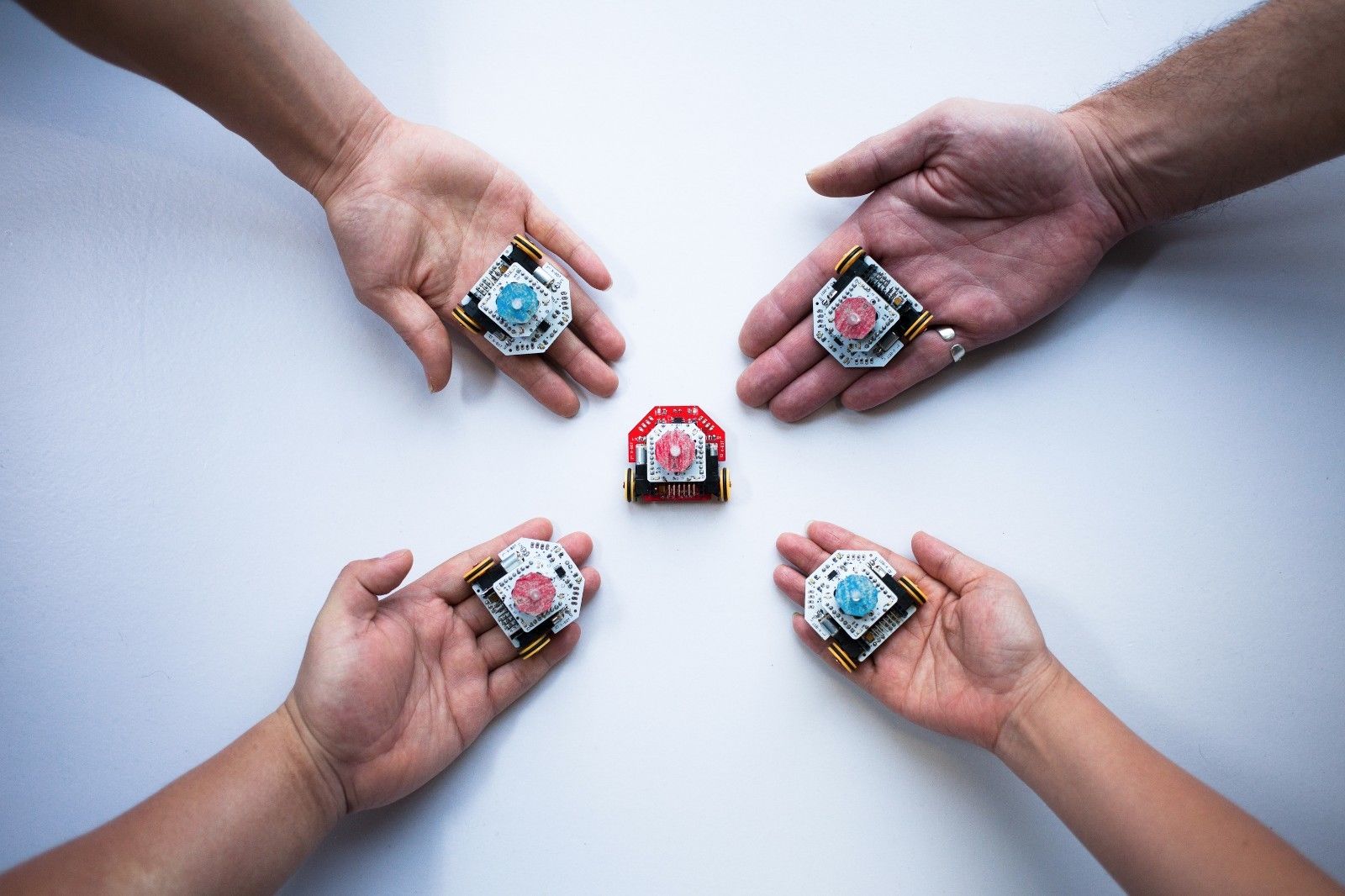 Это роботы от производителей электронных компонентов, поэтому они отличаются высокой интеграцией микросхем, и как результат отсутствием "соплей" (пучков проводов)