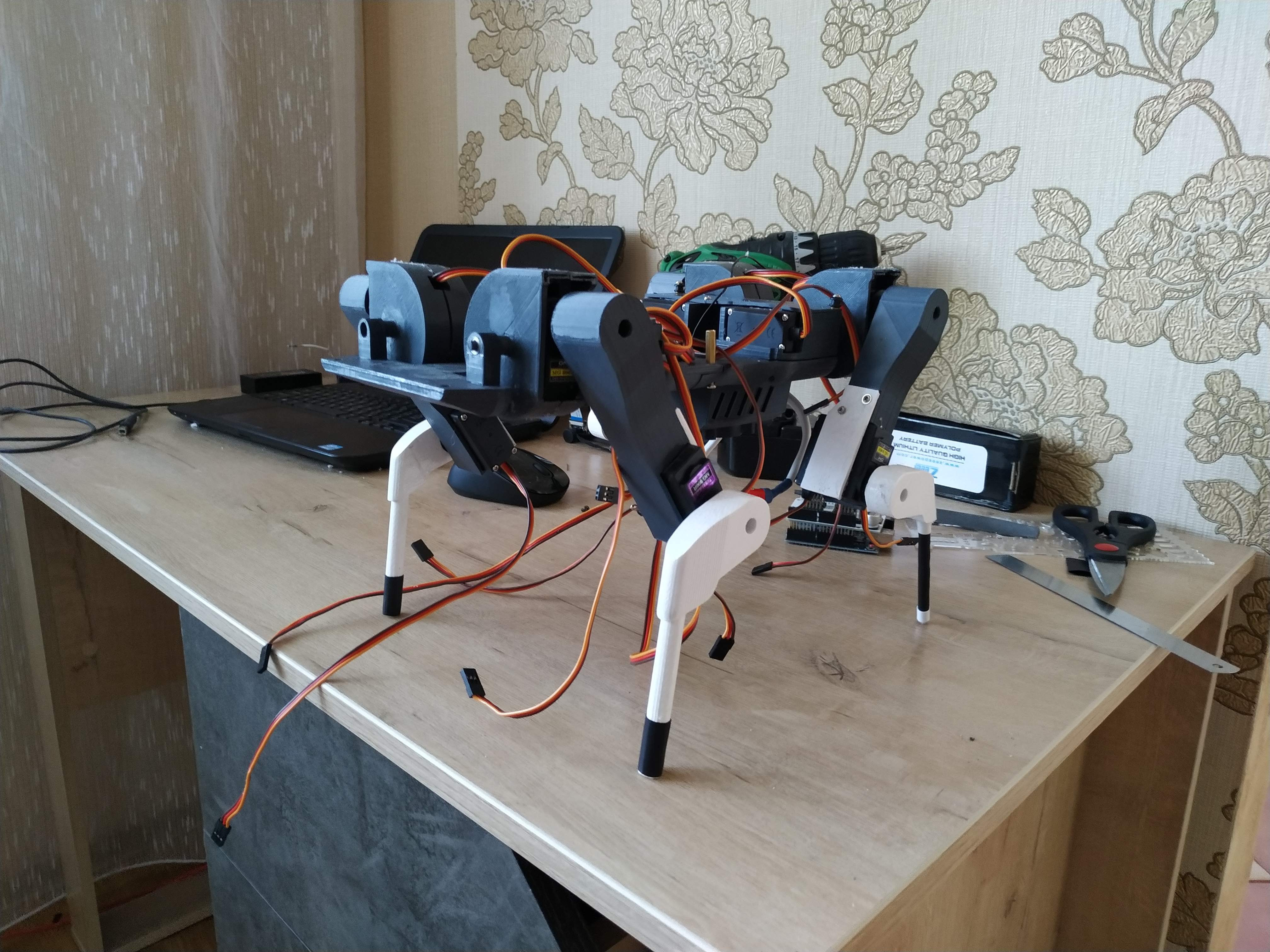 со временем захочется реализовать возможность из любого положения в любое другое переходить, в том числе и в любой момент выполнения последовательности переключиться на другую последовательность. сидит, нужно встать на все лапы. сидит и "рисует" лапой в воздухе, в любой момент остановиться и головой в сторону посмотреть. конец лапы же можно и примерно там же в воздухе удерживать и на стол опустить. идёт вперёд и в любой момент повернуть и идти в другом направлении. последовательности можно доиграть до конца и перейти в начало другой последовательности. можно из текущих точек переместиться в начальные или ещё какие другой последовательности, при чём далеко не всегда возможно точки всех сочленений по прямым переместить.