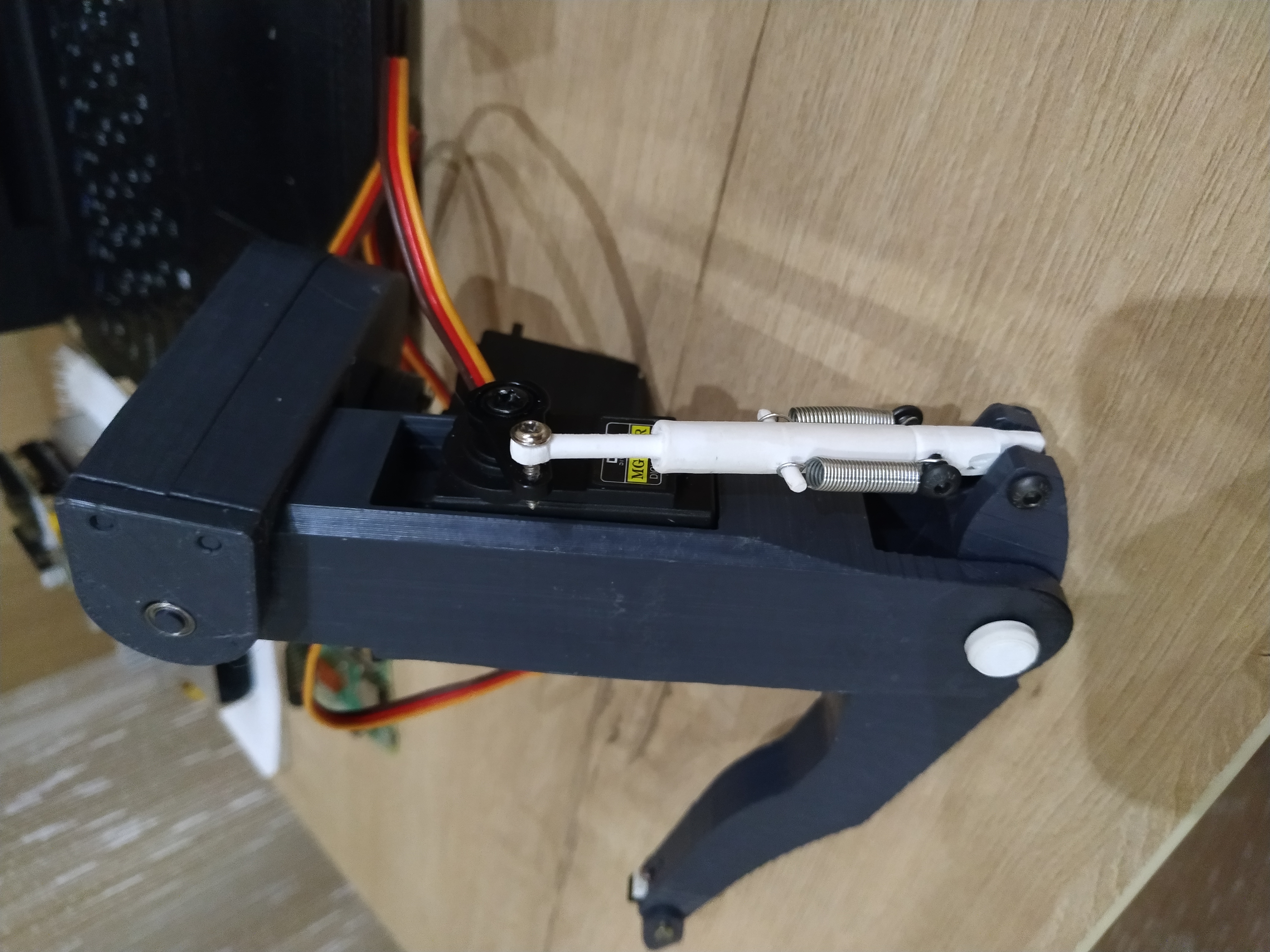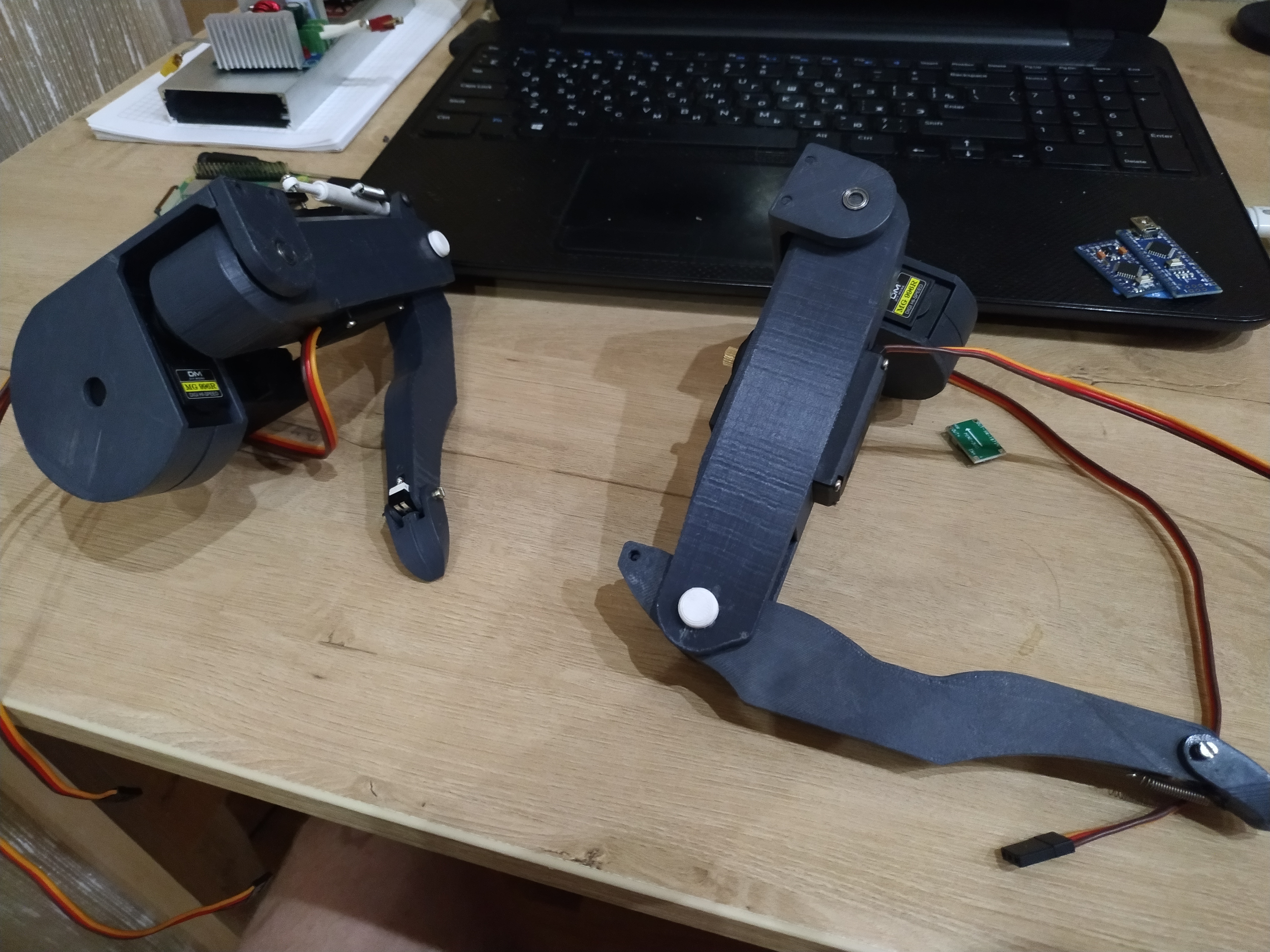 Ух ты, интересно!) А лапы в сколько плоскостях перемещаются? Интересная постановка серв и механика лапы, я так понял он могёт трусцой двигать, точнее одновременное перемещение задних лап, а после передних. Видел подобную механику. У них поворот корпуса исполняется как у автобуса-гармошки, по середине корпуса. От двух банок, хватает тока? А сколько в банке? Просто имею в загашнике 4 батареи 18650. Вообще, две ноги уже напечатал, собрал. На самом деле, про помошь сервам я подумал и спроектировал интересный, простой амортизатор, на разжим. Поэтому при давлении на корпус, двигатели будут стоять на месте, но при этом ноги будут сгибаться. И сделал опять же простую систему нажатия при постановке ноги. Опять же с подпружиниванием. Вечером залью фото ноги, для примерной картины. Есть одна очень интересная идея, связанная с датчиками нажатия ступней, с ее помощью, можно добиться крутых эффектов, таких как если немного пытаться сдвинуть животное в бок, оно будет распознавать и поддаваться направлению и это должно работать в любую сторону. Но при стойке в наклоне это не будет распознаваться как толчок. Главное стоит будет не бюджетно но и не дорого, порядка 400-600 на лапу.