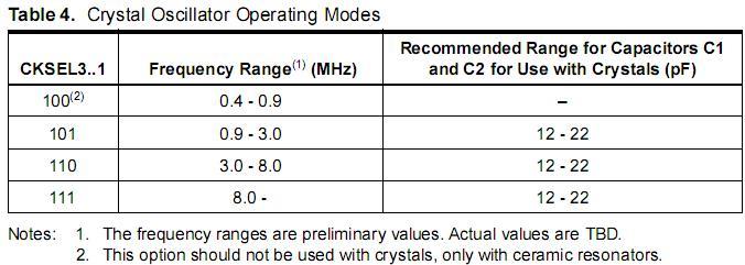 В таблице 2 указаны комбинации фьюзов для разных источников тактового сигнала. Далее написано что с завода МК поставляется с такой комбинацией фьюзов