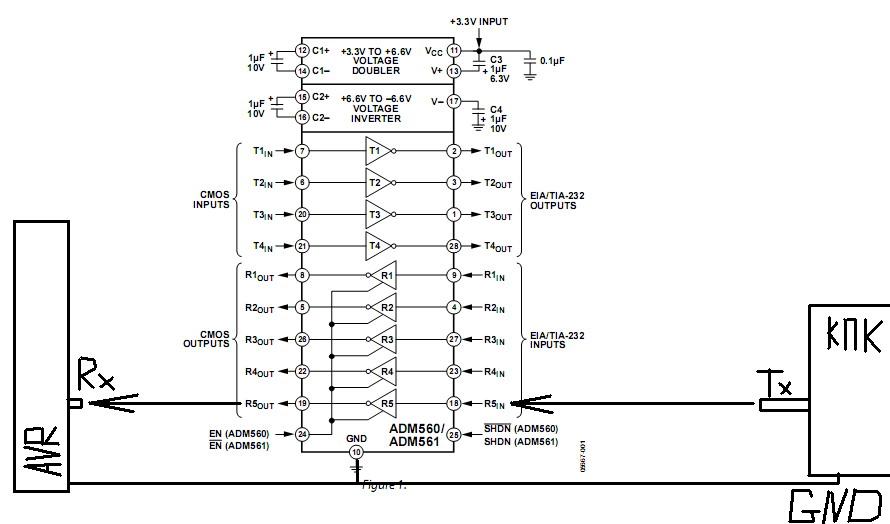 напряжение на ноге Rx AVR падает до 2.9 вольт