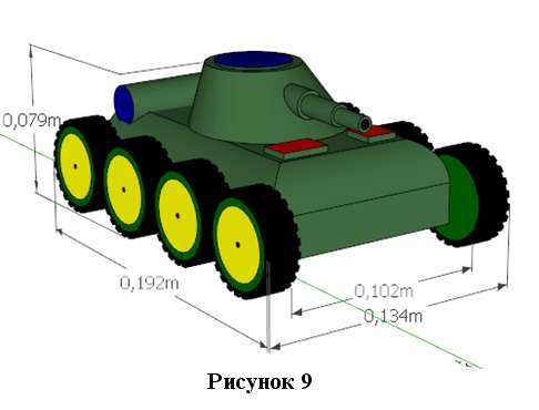 . Так вот нам, для облегчения работы над нашими проектами, разработчики мудро предусмотрели инструмент – рулетку (инструмент номер восемь). При черчении проекта она позволяет делать измерения, что, часто очень удобно для разметки. Другим замечательным инструментом является Tools-Dimentions, позволяющий указывать на чертеже размеры. Для его использования нужно просто последовательно щелкнуть мышкой по двум точкам, расстояние между которыми нужно отобразить (помимо расстояний можно отображать и, например, диаметры). Воспользовавшись последним, сделаем проект более информативным для коллег-единомышленников (рис. 9). Заключение. Я не ставил перед собой цели написать книгу по работе в этой программе и рассмотреть все её возможности, поэтому многое, очевидно, осталось «за бортом». Тем не менее навыков, полученных при выполнении описанных действий, вместе с методом научного тыка, хватит для того, чтобы приглушить страх перед трехмерными редакторами вообще и начать их использование в своих целях.