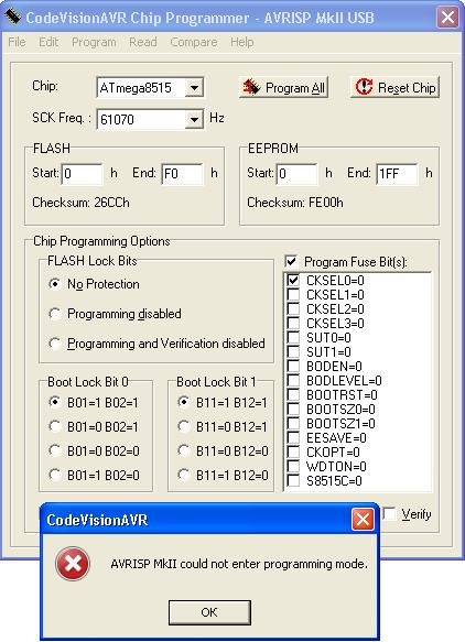 almazkazan писал(а):поставил atmega8515 и chip 16 Mегагерц и всё. что-то еще надо? внешних кварцев к МК не подсоеденено