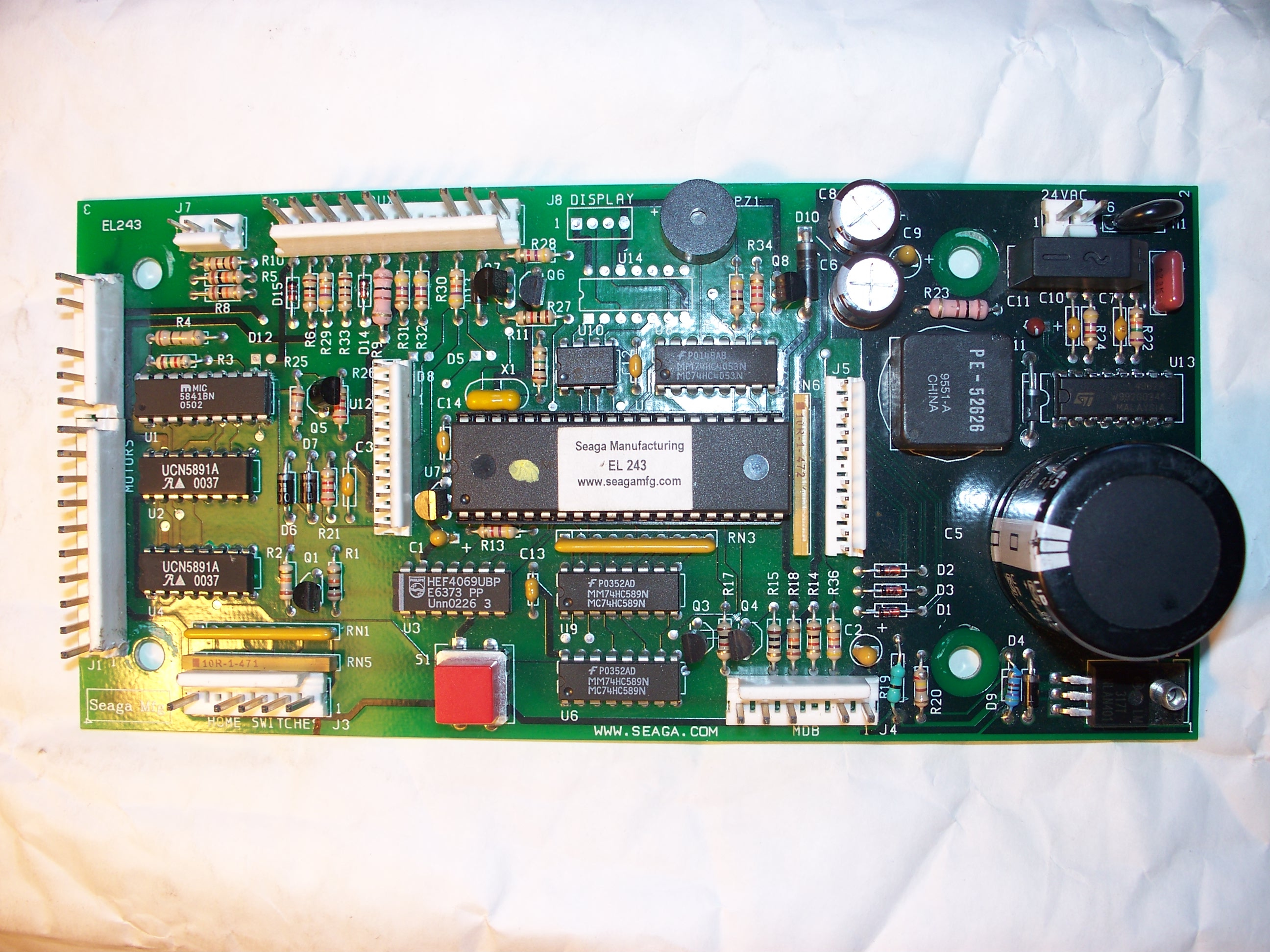На работают двигатели, слева (двигает)и с низу слева разъем(контрол). Сильно греются микрухи слева ucn5891 (их меняли) и справа снизу стабилизатор LM317t.
