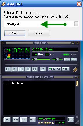 tone://<Frequency Hz> для синуса 231Герц: tone://231
