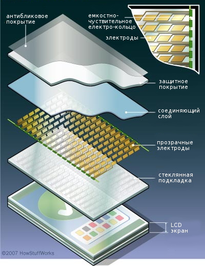 Сенситивная поверхность наносится подобно обыкновенным печатным платам. Она состоит из верхнего изоляционного слоя и сетки дорожек-проводников под ним. Когда палец касается поверхности, он изменяет электрическую ёмкость между соседними дорожками, исходя из чего возможно вычислить его положение и площадь касания.