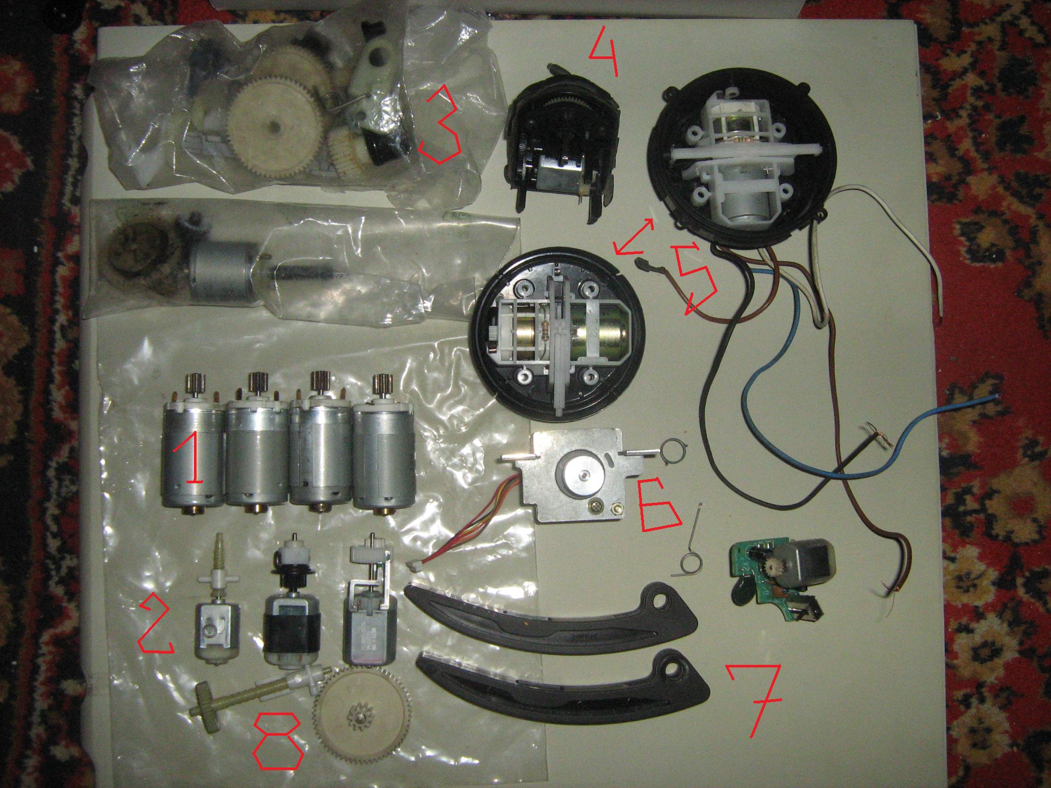1 электромоторчики с двумя подшипниками 12v контакты на верху ( изъято из фольцвагена мультивена “Заслока”) количество- их у меня достаточно.